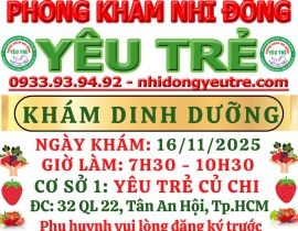 Mỗi tháng khám 1 lần vào sáng Chủ Nhật từ 7h30 đến 10h30, theo lịch thông báo. Phụ huynh vui lòng liên lạc số hotline 0933939492 để đăng ký trước. Xin cảm ơn